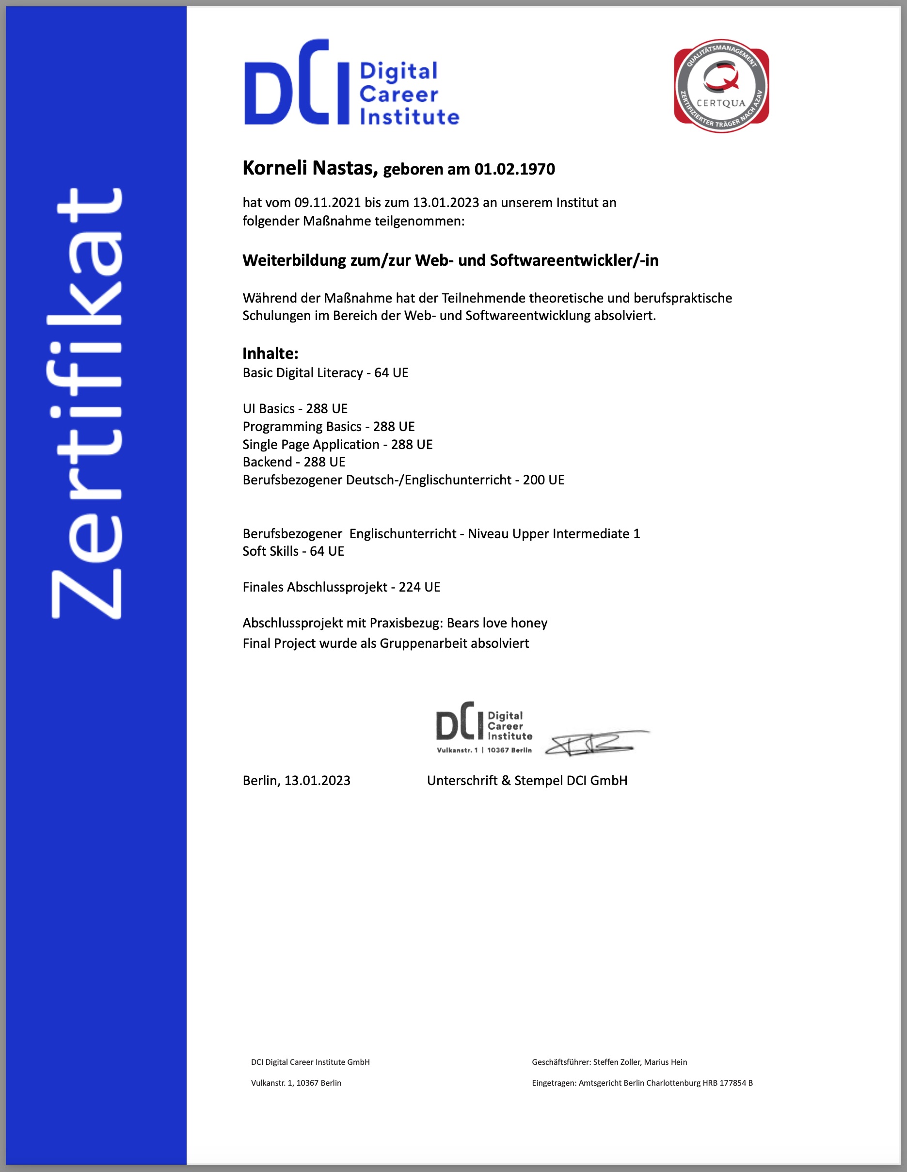 DCI - Further training as a web and software developer